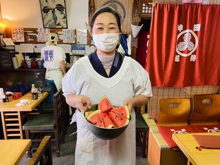 女将さんからすいかの差し入れがあります。