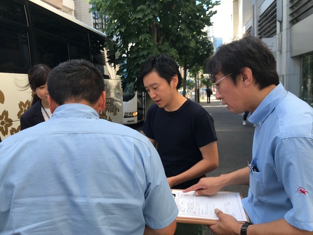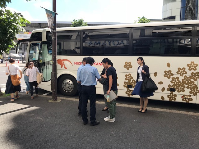 現場まで、バス2台で行きます。