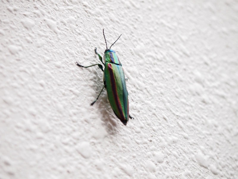 その日は突然来ました。 1週間ほど前、それは地元ではなく、 友達と旅した京都で起こりました。 何となく行こうと決めた龍安寺の庭をぶらぶら、 苔好きなわたしがふさふさとした 立派な苔を観察しながら歩いていると なんともいえない美しい色で 輝いている虫がいました。 残念ながら生きてはいませんでしたが、 足まで金色にきらきらしている玉虫に しばらく釘付けでした。