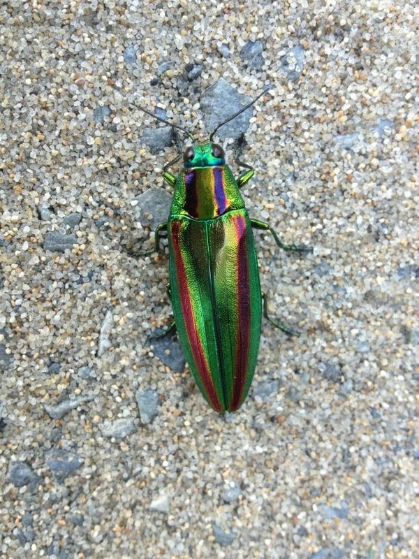 今年はタマムシが多数出現中なので、 街中でもみつかるかも、と岸先生。