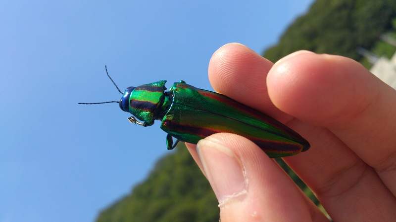 岡山県倉敷市にいました〜. 娘に玉虫の話をしたら 「えっ?この前見たよ♪ これ〜」って。