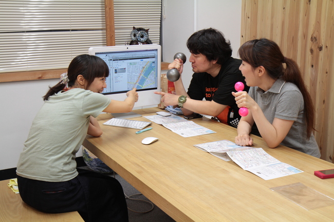 まずはわざとらしくダンベルを持つ 路線図チーム。 なんでも今日が仕様を決める 最後のミーティングなんだとか。 「わー、今日決めないとー!」と 盛り上がっております。