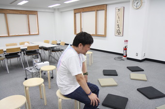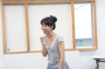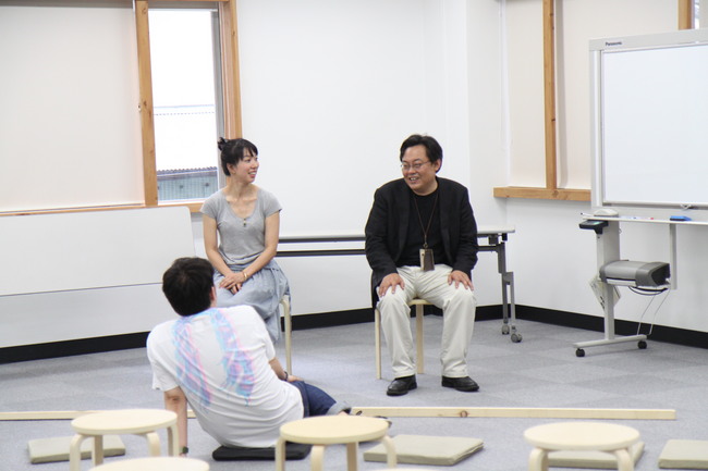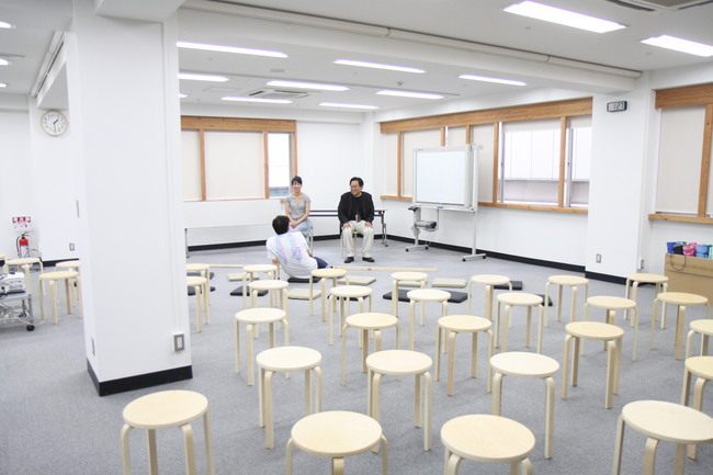 「このホワイトボードを スクリーンだとするでしょ」 「じゃ、この辺からお客さんに 座ってもらいましょうか」 など実際に立ったり座ったりしながら 検討していきます。