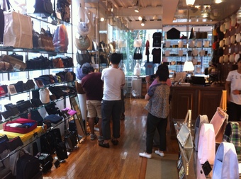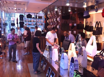 その足で、代官山にある B印YOSHIDAの店舗で撮影に。 雰囲気のある素敵なお店と 新カバーの組み合わせはバッチリ! あんまりにもいい感じなので 各自の携帯電話で撮りまくってました。