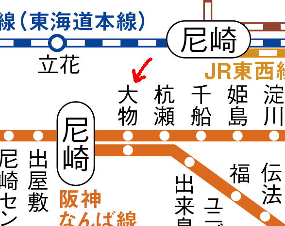 阪神本線の駅です。尼崎駅のとなりですよ。 おおものっ! すごい。 威厳に満ちあふれてる! なんでそんな名前つけたのかしら。