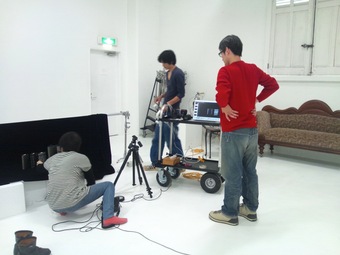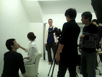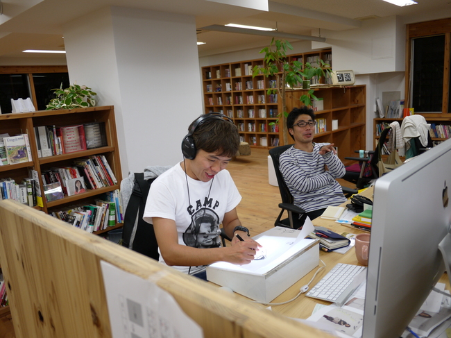 という席並びで仕事をしているのですが、 撮影当日は、オトヤさんにも出張願いまして、 ご近所様総力戦でございました。