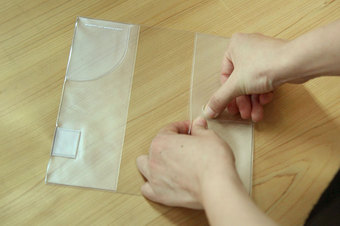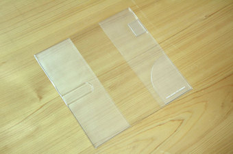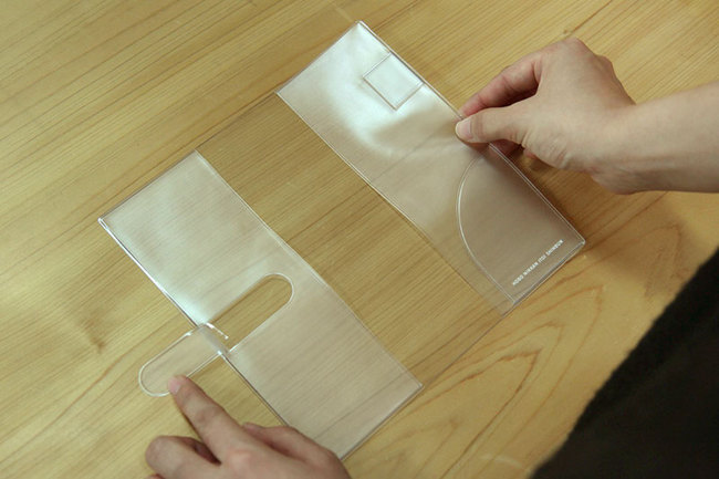 ホワイトラインに比べて、 ちょいと固めな 元気な色と、 チェックのシリーズ。 「クリアカバー、 どないして、つけたらええんや、、、」 というお声をいただきました。 「固いから、 まげちゃうと跡がついちゃう、、」 というメールです。