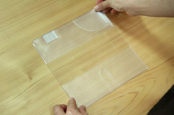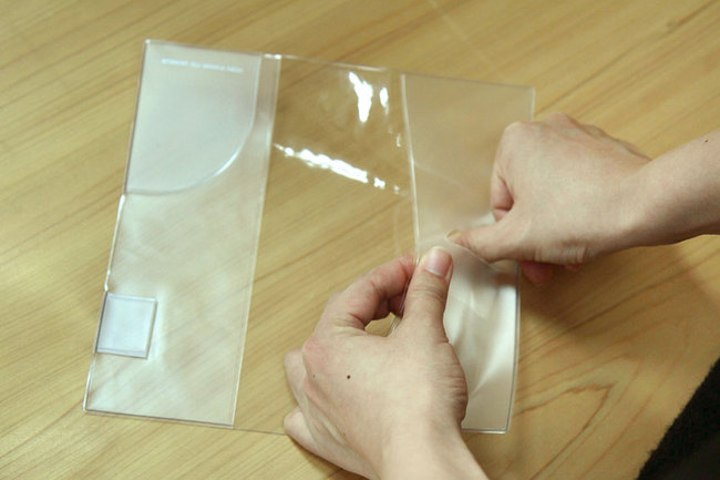 2、そしたら、カバーに入れる手帳の表紙と裏表紙を、2枚目の写真のように開きます。 「どりゃっ!」と開かずに、ゆっくり開いてください。
