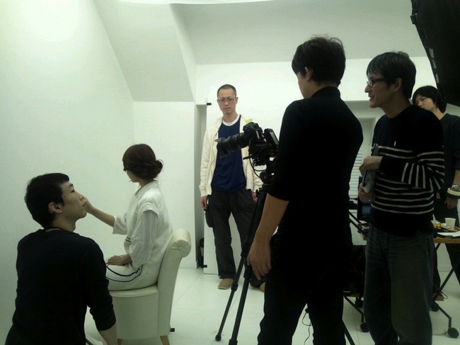 写真は、撮影現場で、 どこかの修行僧かと見紛うばかりの 。