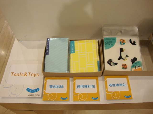 手帳といっしょに使うアイテム 「TOOLS&TOYS」は、 台湾でも人気です。 両面シールは「雙面貼紙」 フィルムふせんは「透明便利貼」 クリアブックマークは「造形書籤貼」 と、表記するんですね。