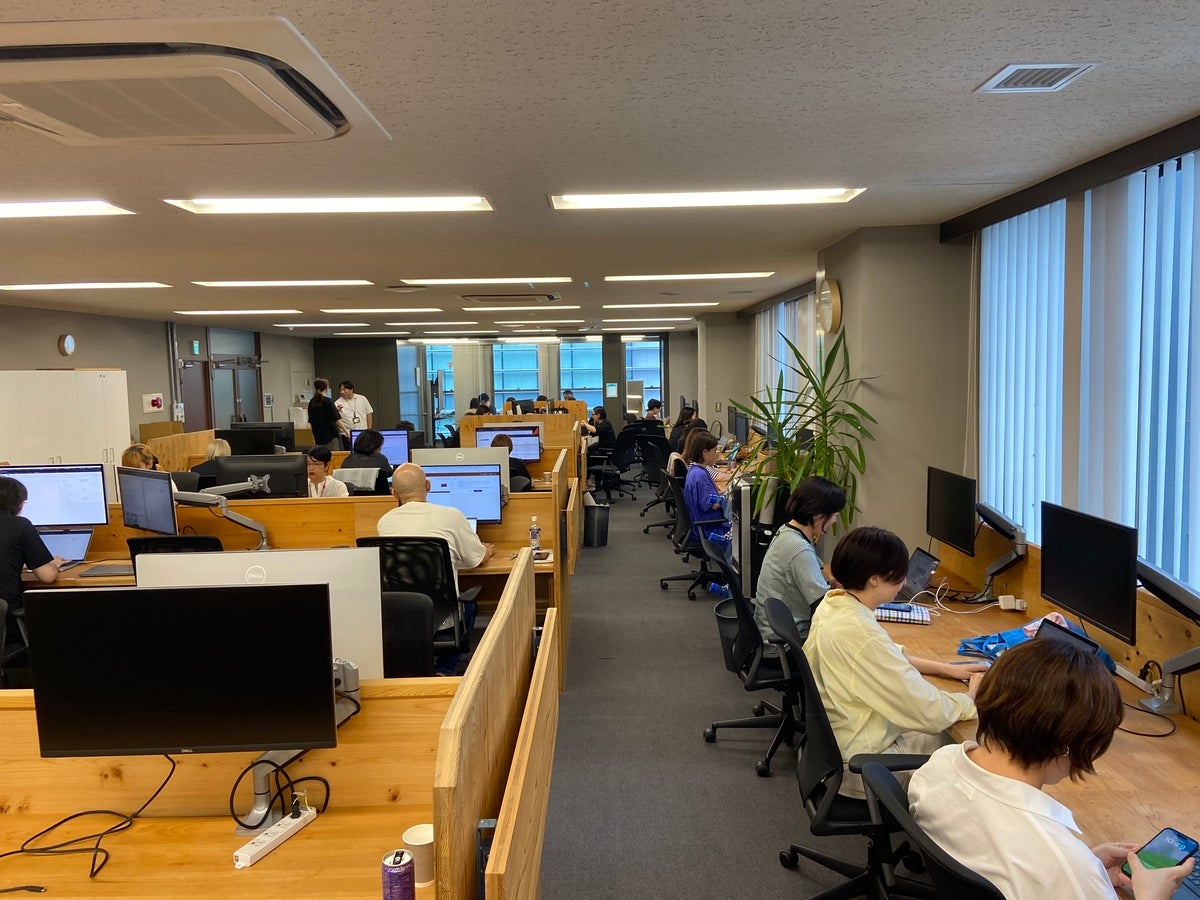 This is the Hobonichi office building. In preparation for the launch of the Hobonichi Techo 2025, the team is gathered and on standby...some ready to handle inquiries, and others checking links after the release.