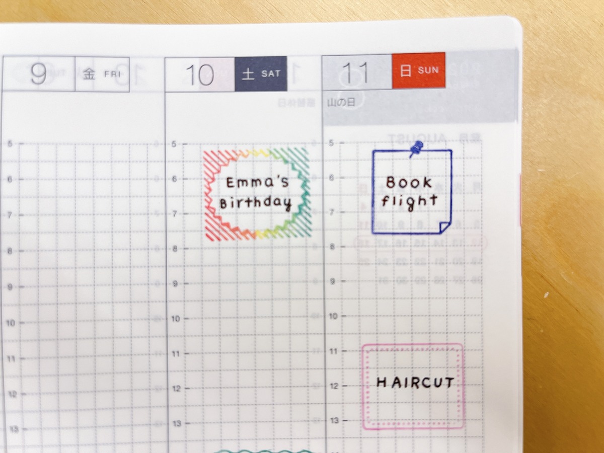 You can use the stamp to mark important things like someone's birthday at the top of the day, or use the "Memo" design to write down important to-dos.