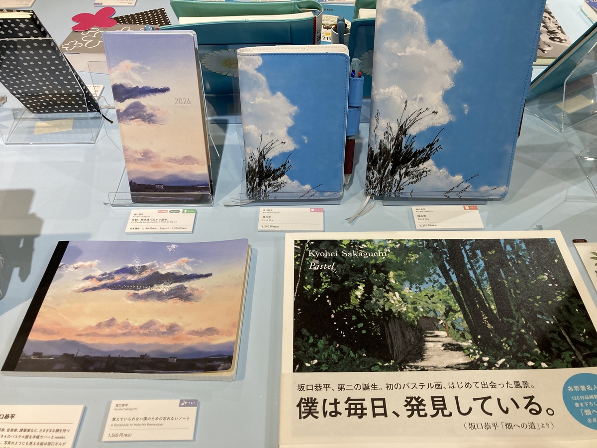 One customer told me they were really curious about the Kyohei Sakaguchi series. This series includes covers, Weeks, and a graph notebook. At first glance, the covers look like photographs, but they actually feature Sakaguchi’s pastel drawings.