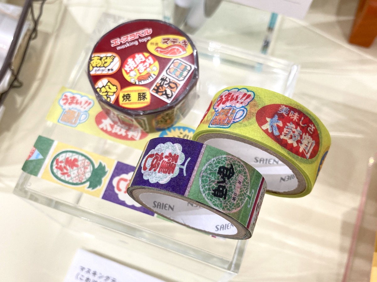 Continuing the food theme, there’s also these fun masking tapes. They each contain Japanese phrases that you might see in a supermarket. The pop design will bring excitement to your techo, or any letter or present that you stick it on.