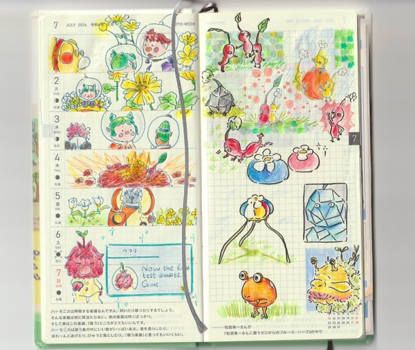 Here is an example of Marie’s Weeks from Sweden. She’s been using the Weeks now for several years as a game journal. It seems that in the Summer of 2024, she was getting stuck into Pikmin 4!