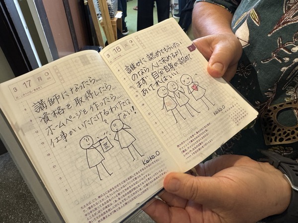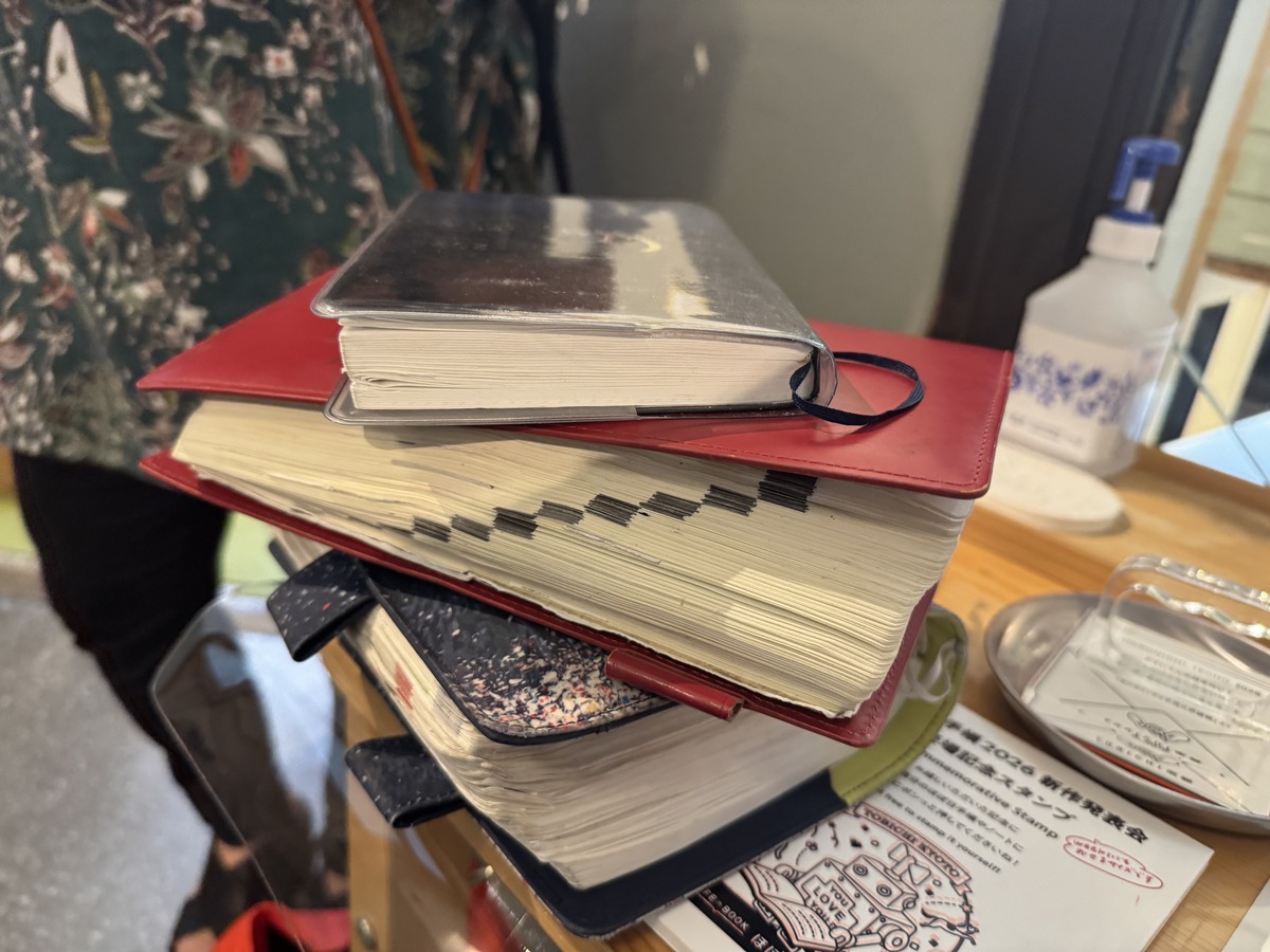 They use the Original, Cousin, and the Large 5-Year Techo, each for different purposes. They told us that it's their 15th year using the Hobonichi Techo!