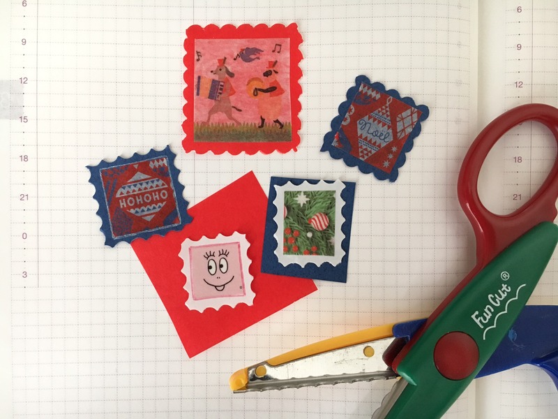 切手サイズに紙を切り、
