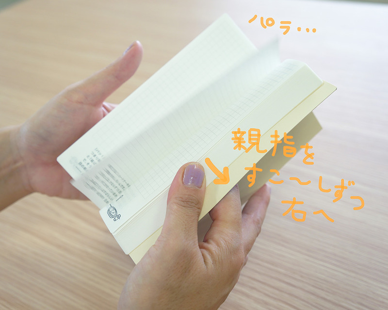 親指をすこ〜しずつ右に移動させながら、パラパラする。