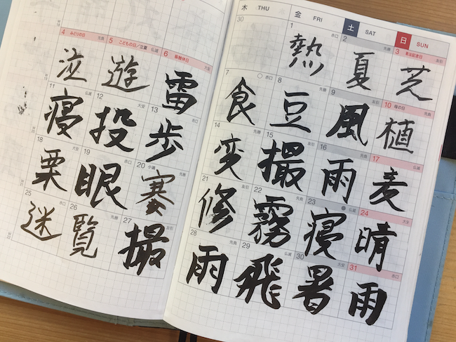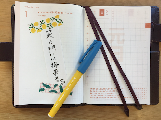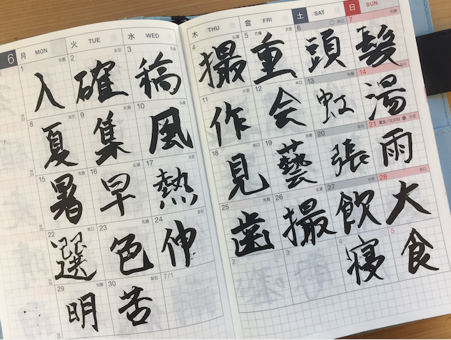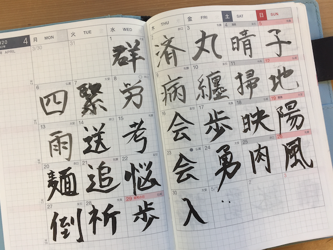 カレンダーページに筆ペンでその日1日を