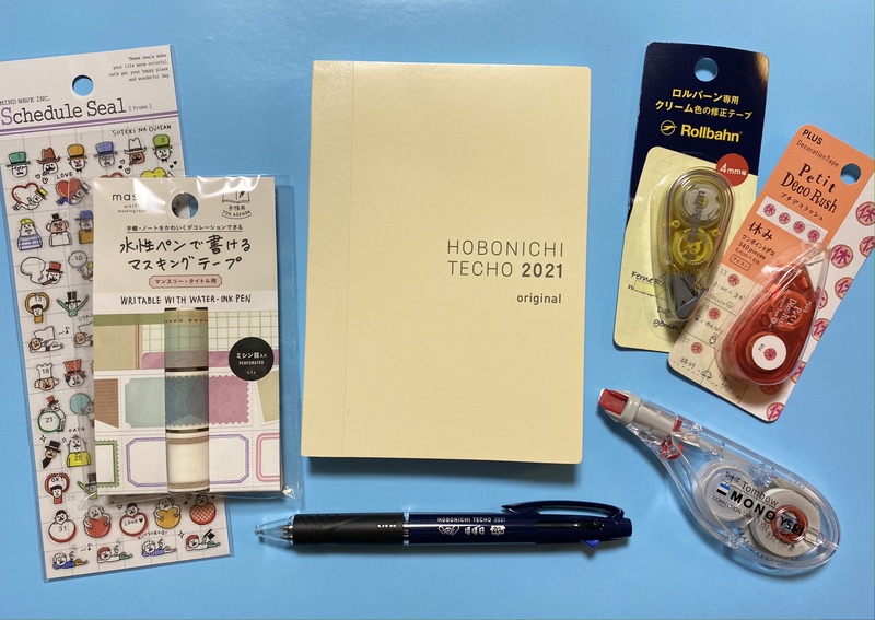修正ペンにマスキングテープ、ワンポイントデコに、シールなど。