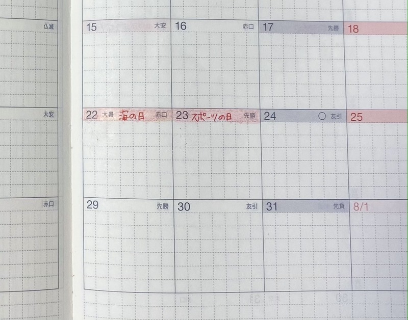 ・海の日 7/19→7/22