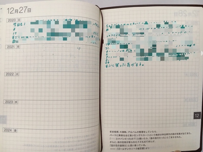 ▲こんな風にメインの部分が真っ白なことも多く‥‥。5年手帳や仕事用のカズンに書いていた結果、オリジナルに書く内容がめっきり減ってしまいました。