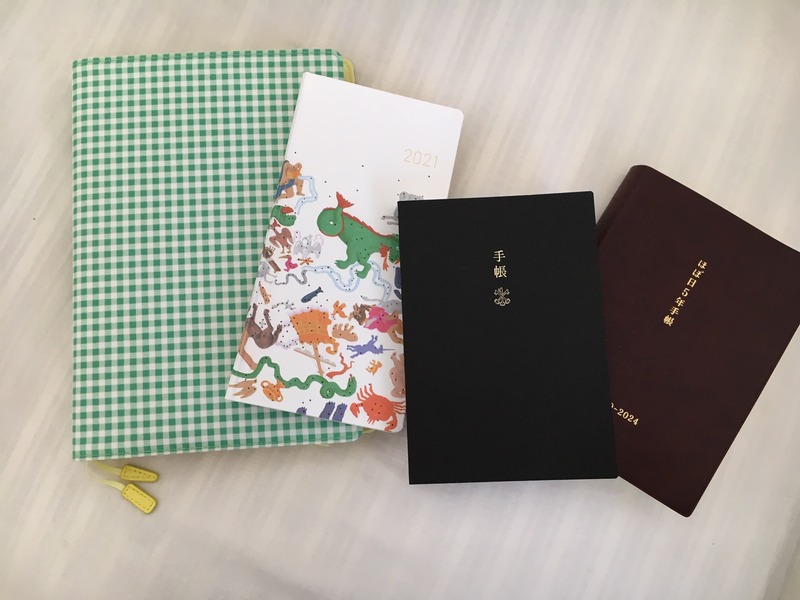 ▲左から仕事用のカズン、文具手帳にしたいweeks、プライベート用のPlannerと5年手帳です