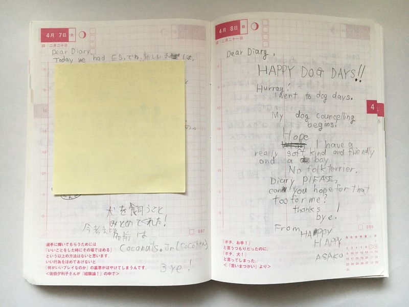 ▲犬を探し始めた日。謎に英語交じりなのは、帰国した直後であまり日本語が得意ではなかったから。そのわりには文法がめちゃくちゃ‥‥。