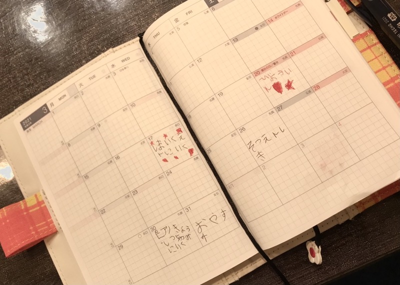 ピアノに行く日を書き込んだりと、