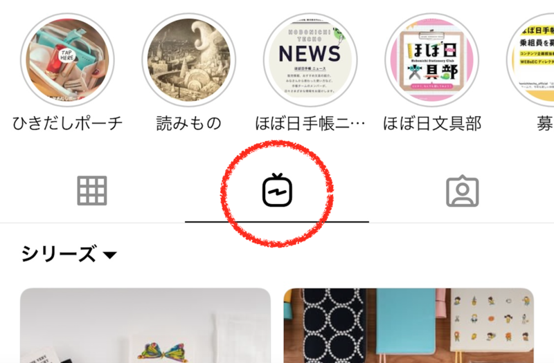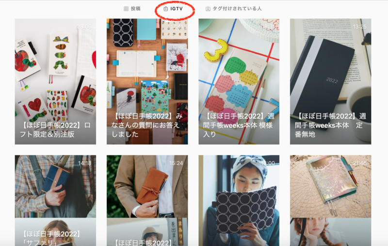 パソコンから見るかたはこちらの「IGTV」の文字を