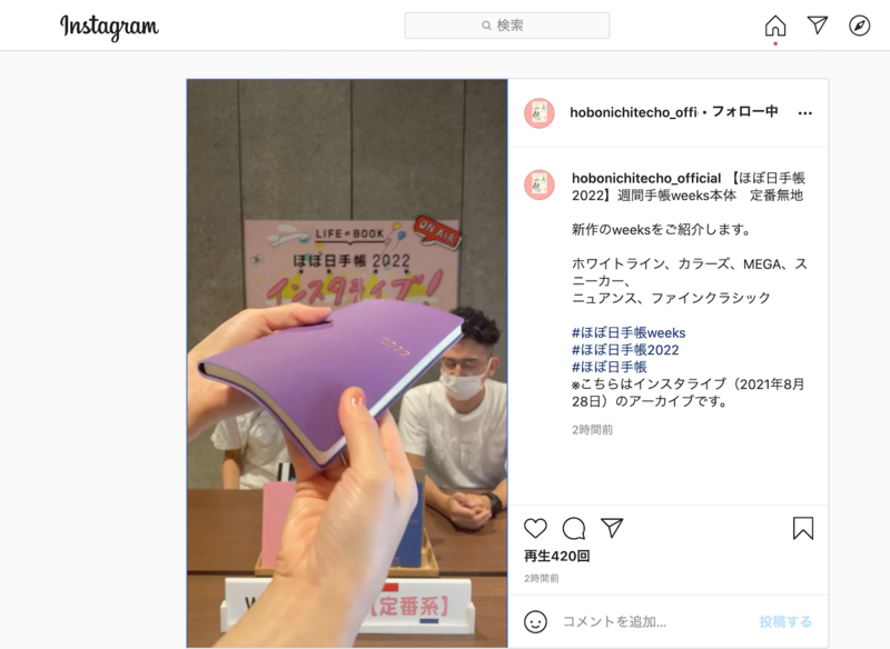 公式インスタグラム「ほぼ日手帳[公式]」の