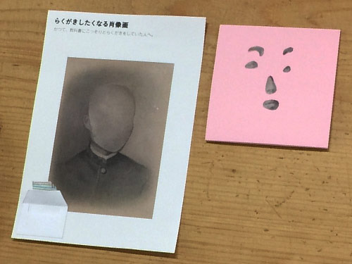 まさに「らくがきしたくなる肖像画」を使った福笑い、