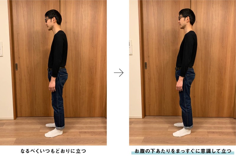 肩の位置を前に出さないようにすると、骨盤がまっすぐに。
