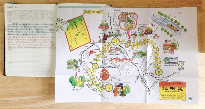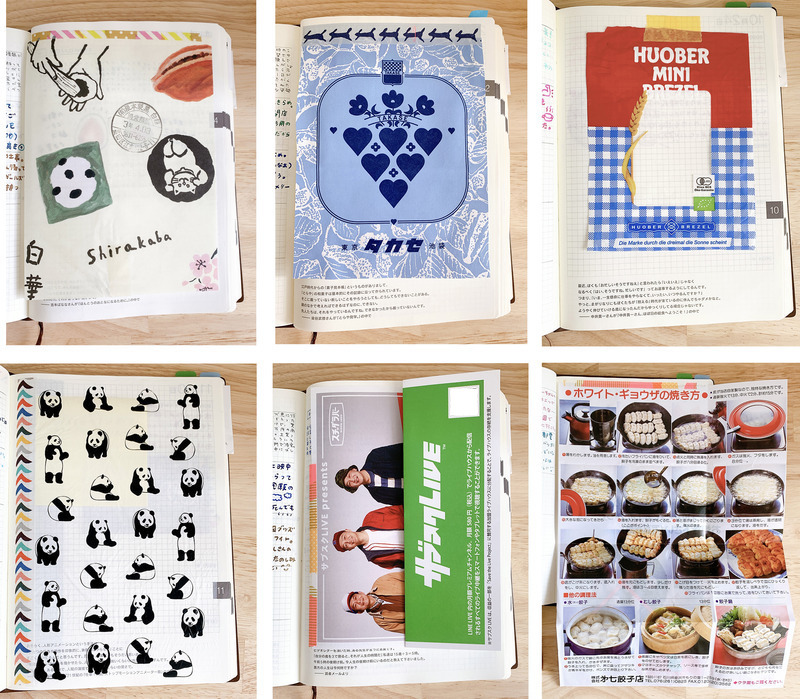 ▼5年手帳に貼った、包装紙&チラシのコレクション。
