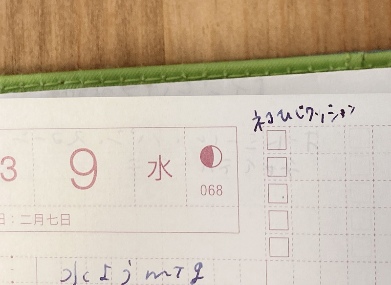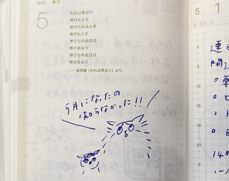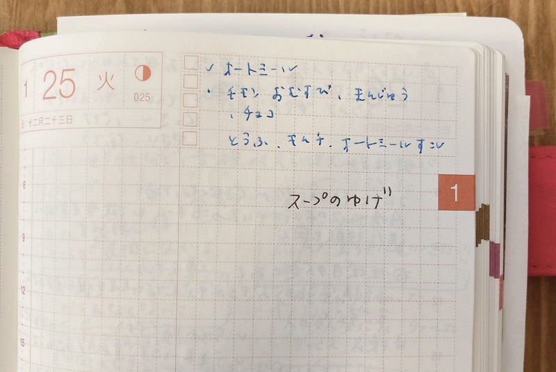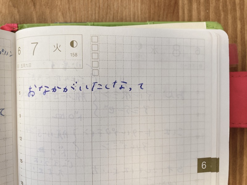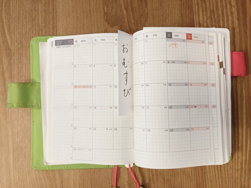 ▲ほぼ白紙の月間ページに書き初めで「おむすび」。しかも10月。