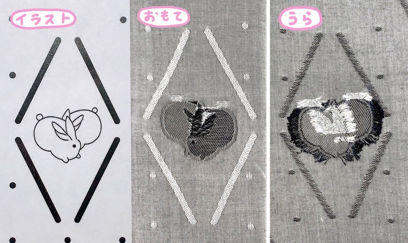▼元のイラスト/表生地/裏生地を比較するとこんなかんじ。