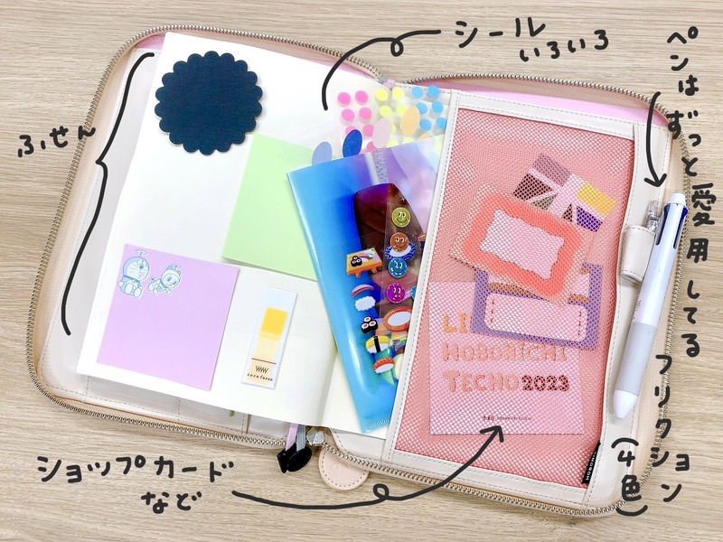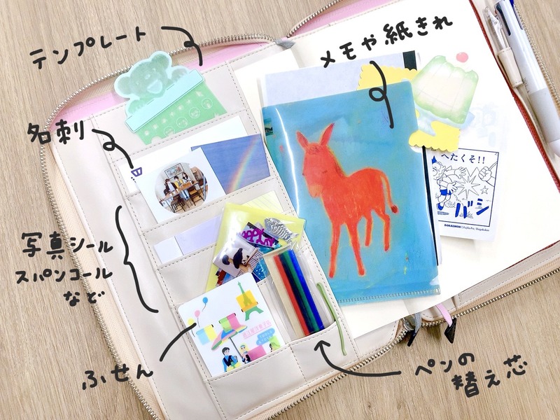 ▼ポケットにはふせんや名刺、テンプレートなど。