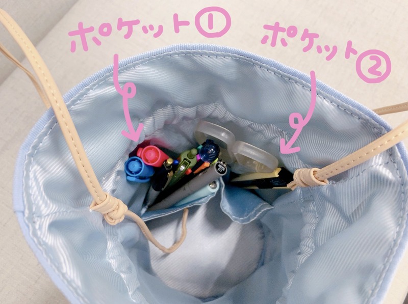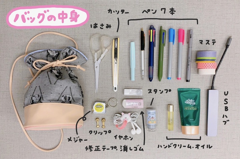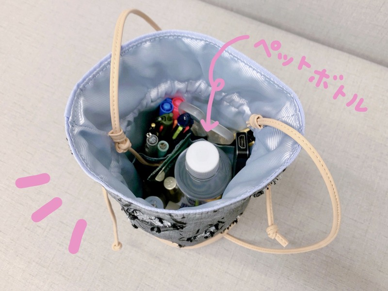 ▼巾着型のバッグは小さく見えてたっぷり入る。