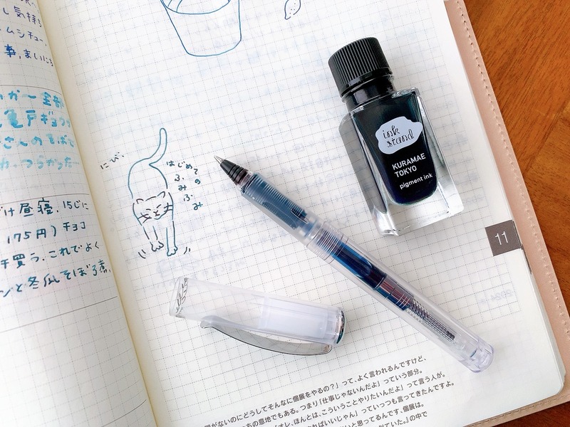 ▼最近はカキモリのローラーボールで書くのがお気に入り。