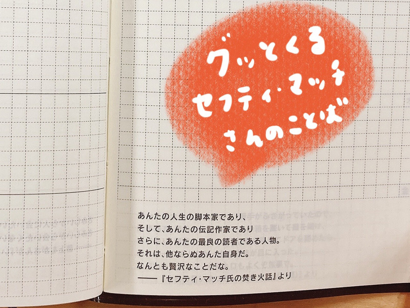 ▲「5年手帳」の自分の誕生日にある「日々の言葉」。刺さります。
