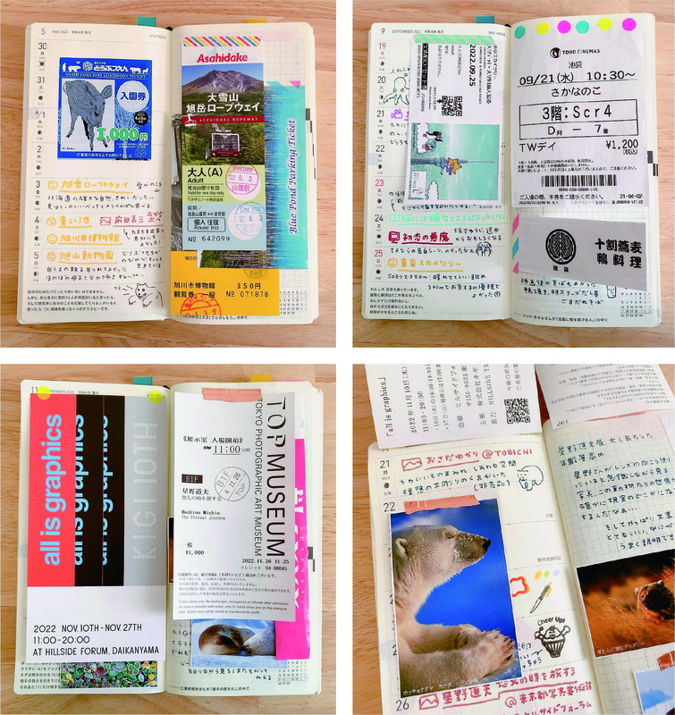 行った展示のチケットを貼ったりする