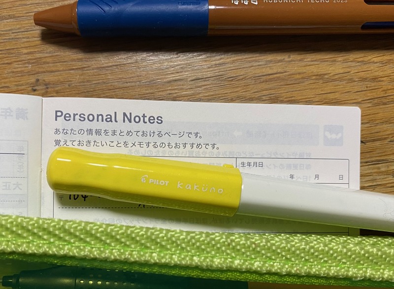 ▲手軽な万年筆PILOTの「カクノ」で記入