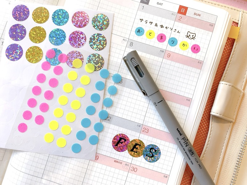 月間カレンダーの特別な予定を丸シールで飾ると、