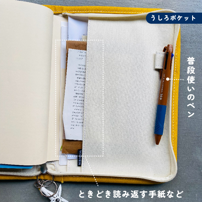 ▲ポケットが深いので、予備のペンを2本入れても余裕です