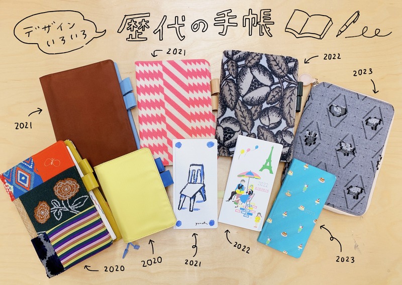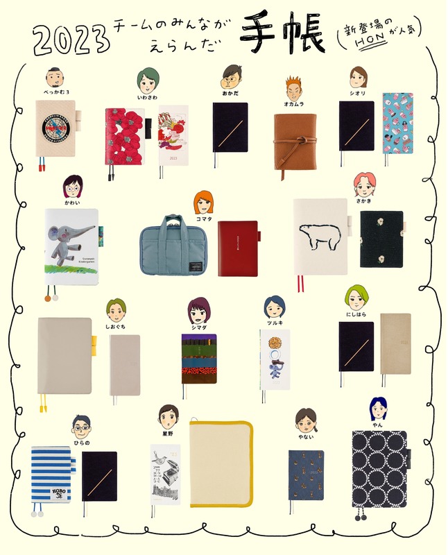 ▼2023年、チームのみんながえらんだ手帳をずらっと並べてみました。