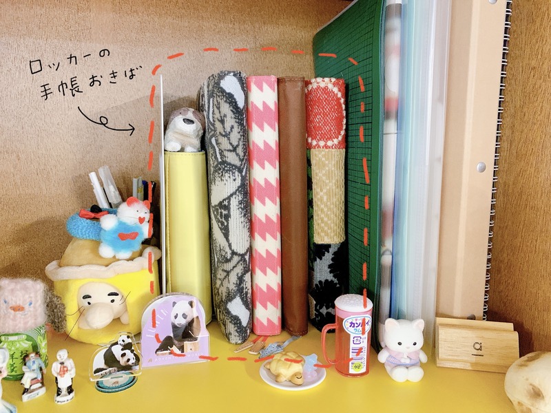 ▼使い終わった手帳は、会社のロッカーに並べています。