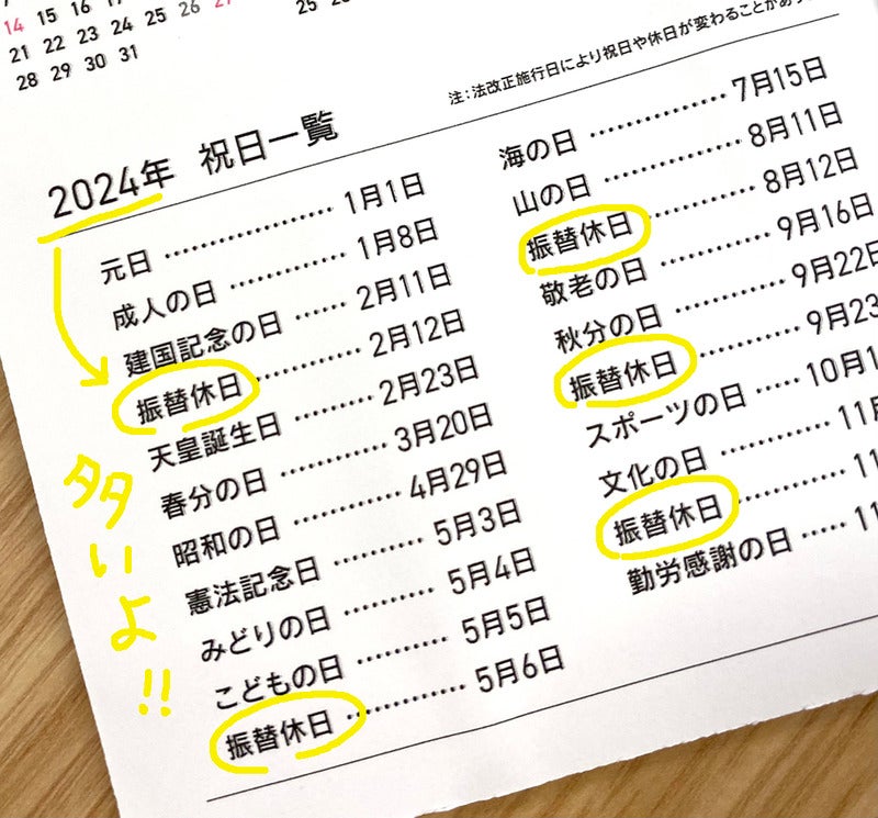 ▲ちなみに、2023年の「振替休日」は1日だけ。