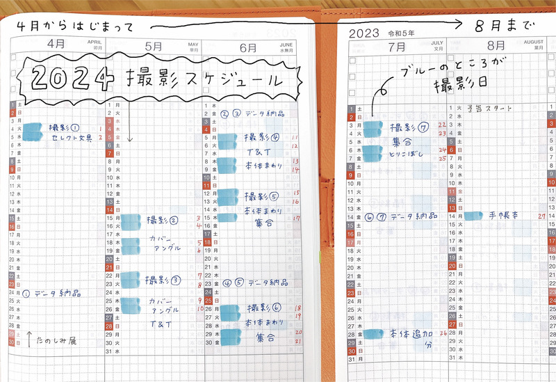 ちなみに撮影スケジュールはこんなかんじ。