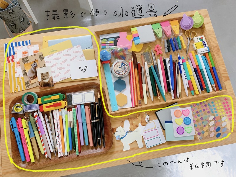 ▼小物のスタイリングでよく使う文具。私物を使うこともあります。