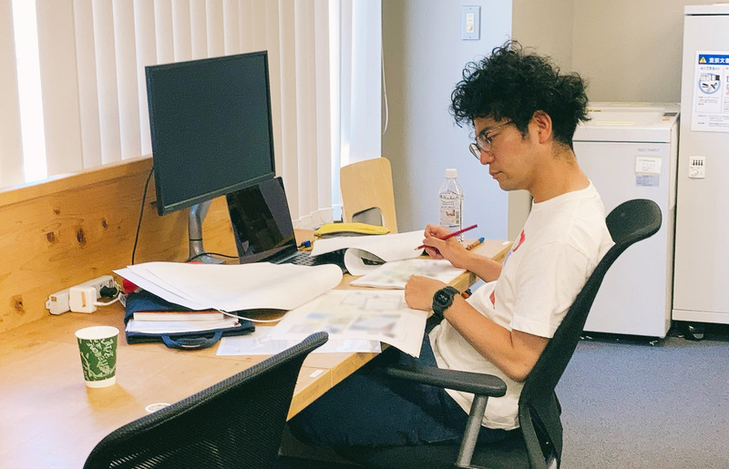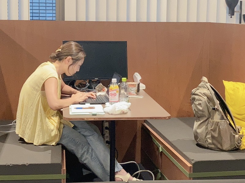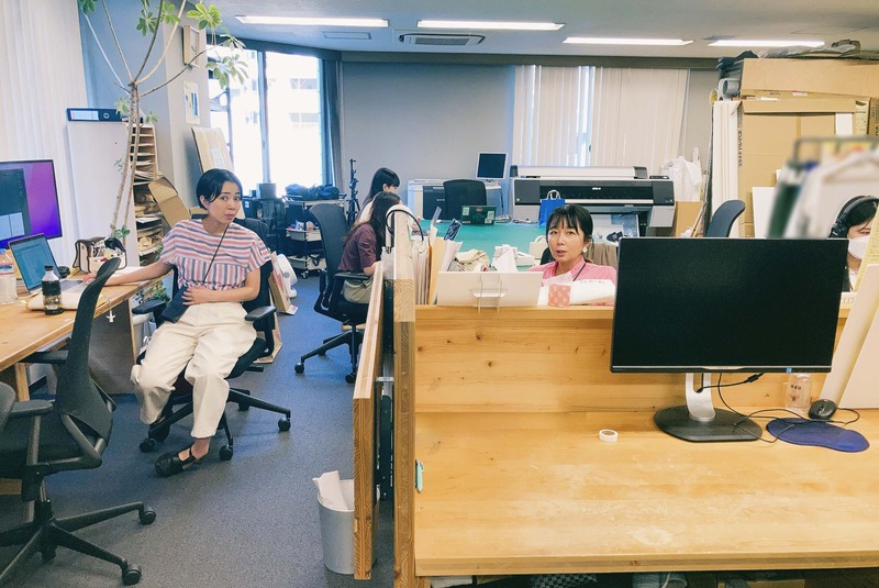 ▼いつもPC画面に食い入るように作業しているめろん(真ん中)。